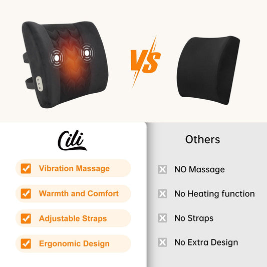 CILI Lumbar Support Pillow for Ofiice Chair, Heated Back Support Pillow with Vibration, Back Massager for Pain Relief, Back Cushion for Sofa Car Recliner, Adjustable Straps, Memory Foam CL-4102